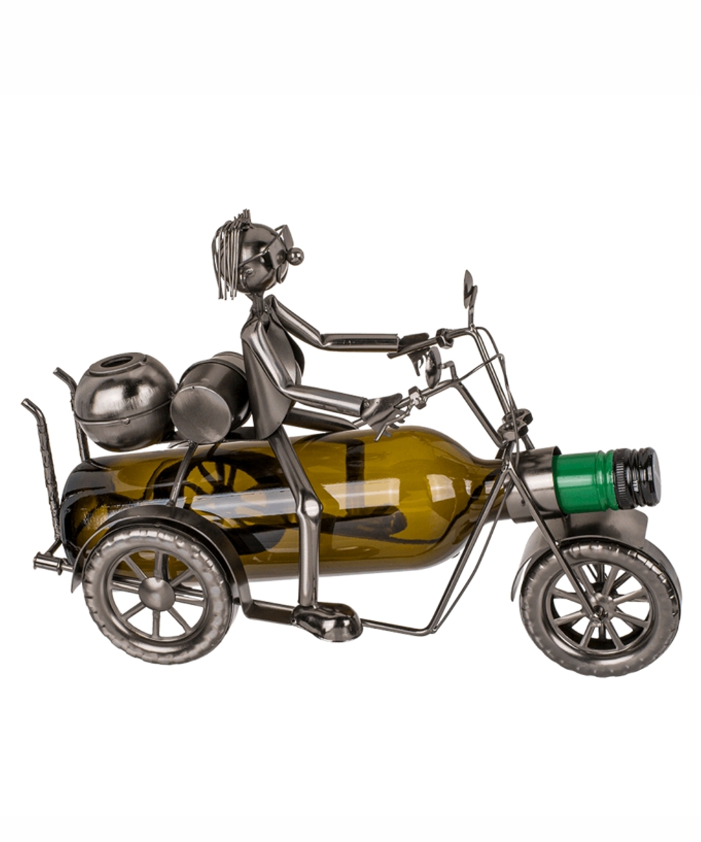 Weinflaschen in typischen Flaschengeschenktüten zu verschenken ist nicht nur langweilig, sondern zeigt auch, dass man nicht viel darüber nachgedacht hat. Stattdessen können Sie eine Weinflasche in einem Flaschenhalter aus Metall verschenken, der liebevoll gefertigt wurde und mit Sicherheit den Geschmack des Beschenkten trifft! Der Flaschenhalter im Biker-Stil wird in Vetrinen und Kommoden zum Hingucker werden!