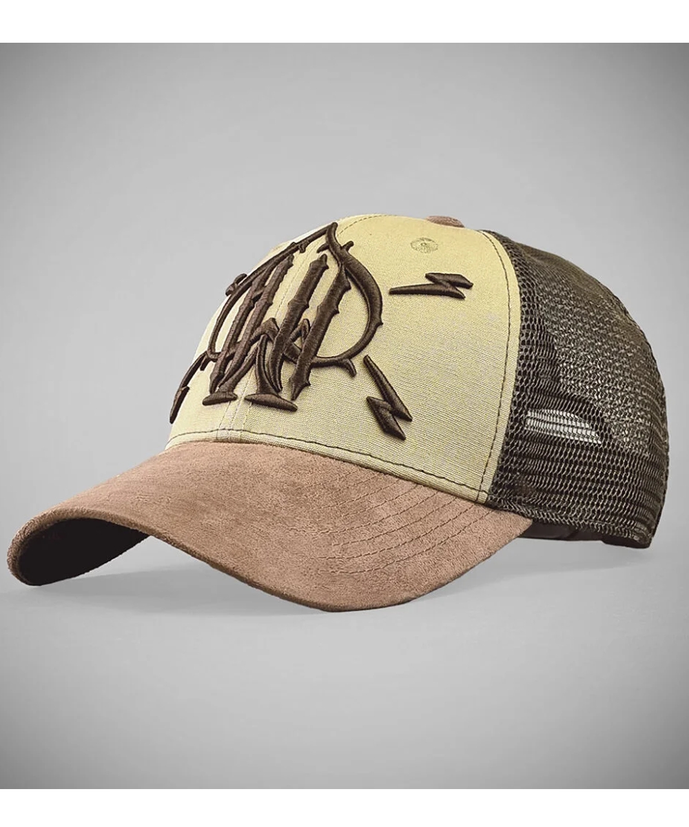 - Beige Trucker-Cap aus braunem Wildleder mit gebogenem Schirm