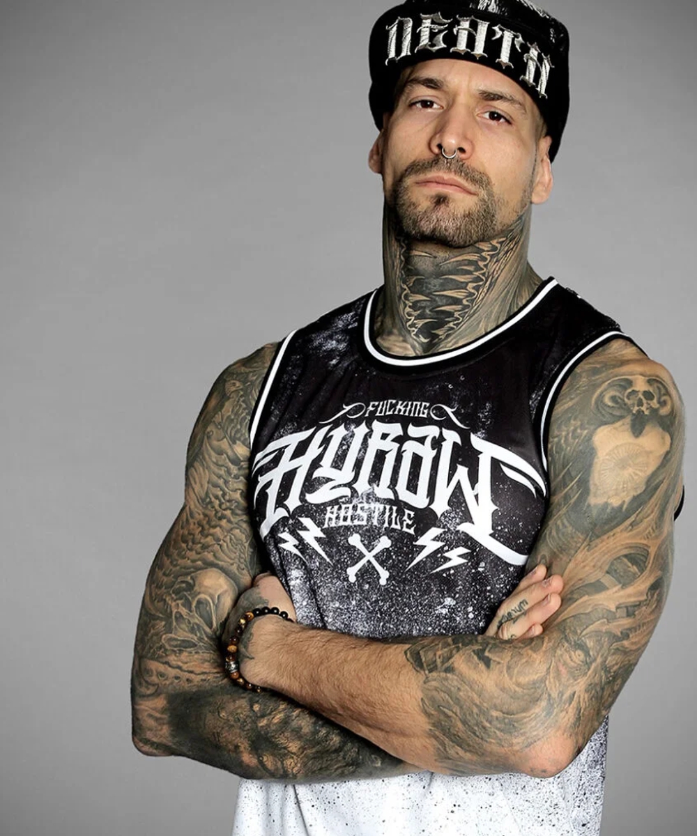 - mit weißem Hyraw Clothing-Logo-Aufdruck auf der Vorderseite