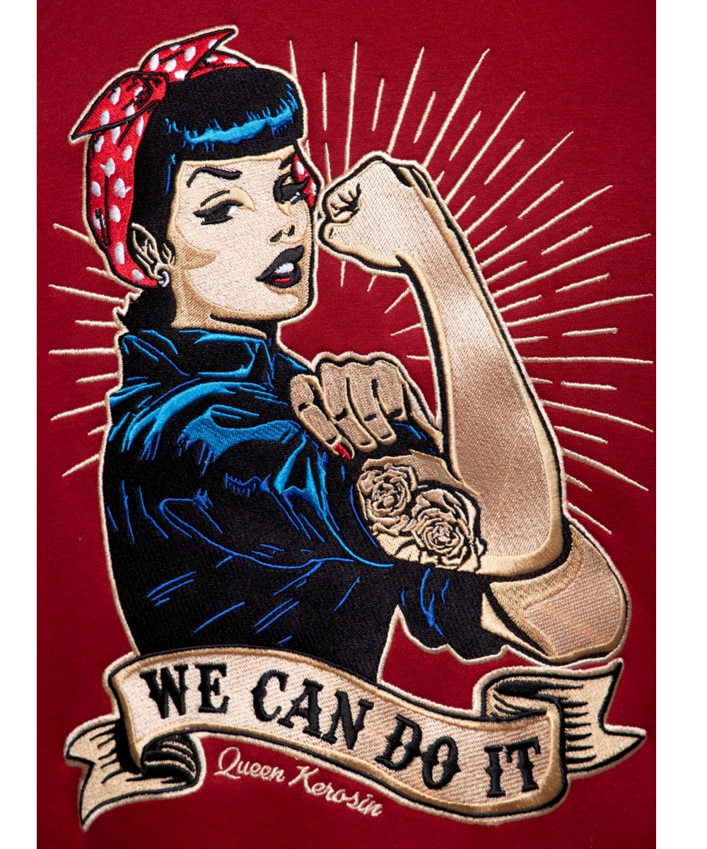 - großer auffwändiger Stick auf der Innenseite der Kapuze