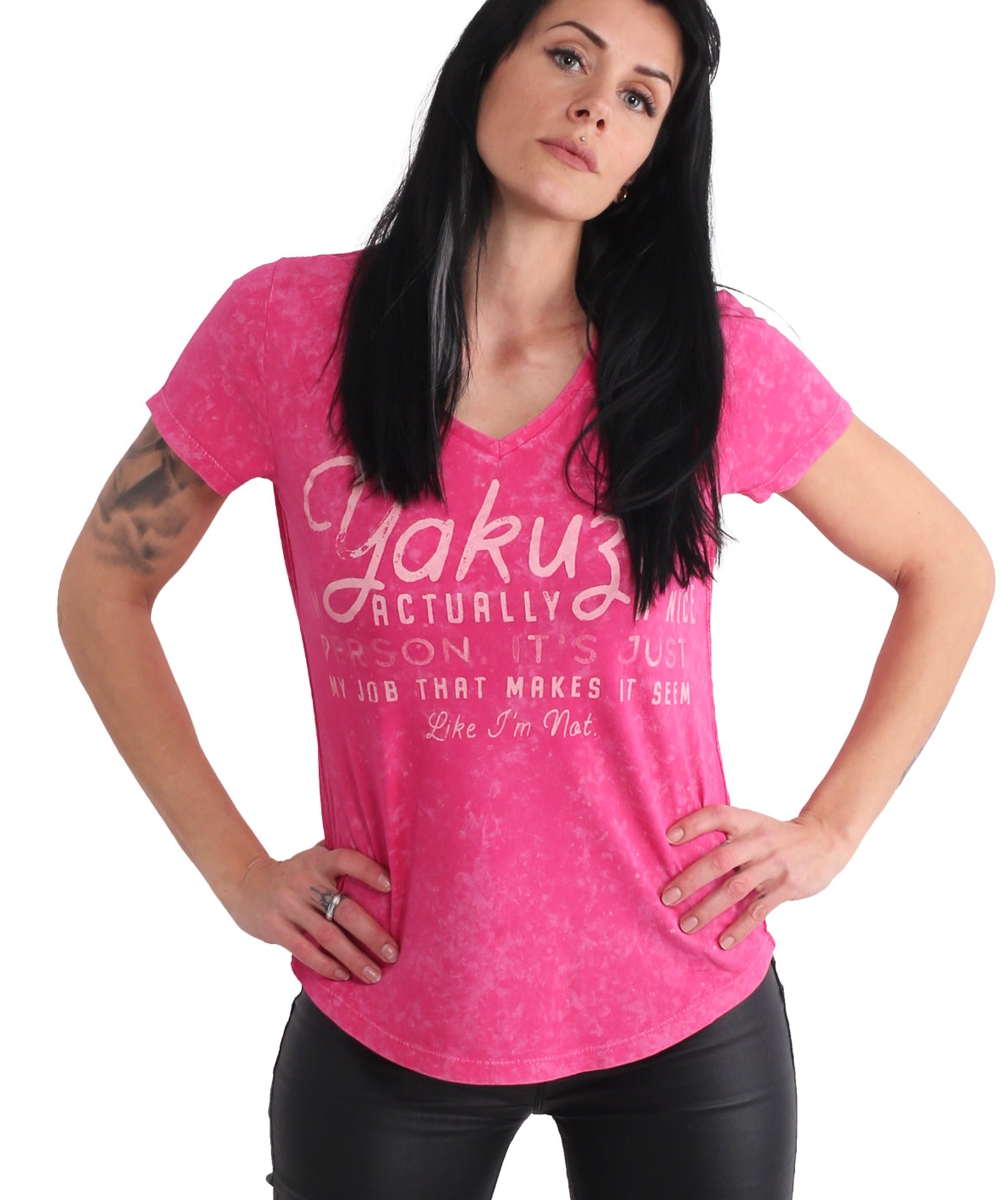 - YAKUZA NICE PERSON DYE T-Shirt mit V-Ausschnitt für Damen
